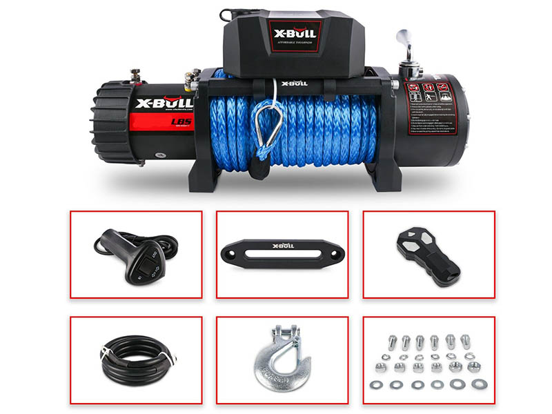Con correa de plasma diametro 10 mm x 28mt. Controles remotos: inalámbrico y con cable. Cables de solenoide. Pasacable de aluminio. Gancho. Sin soporte de instalación.